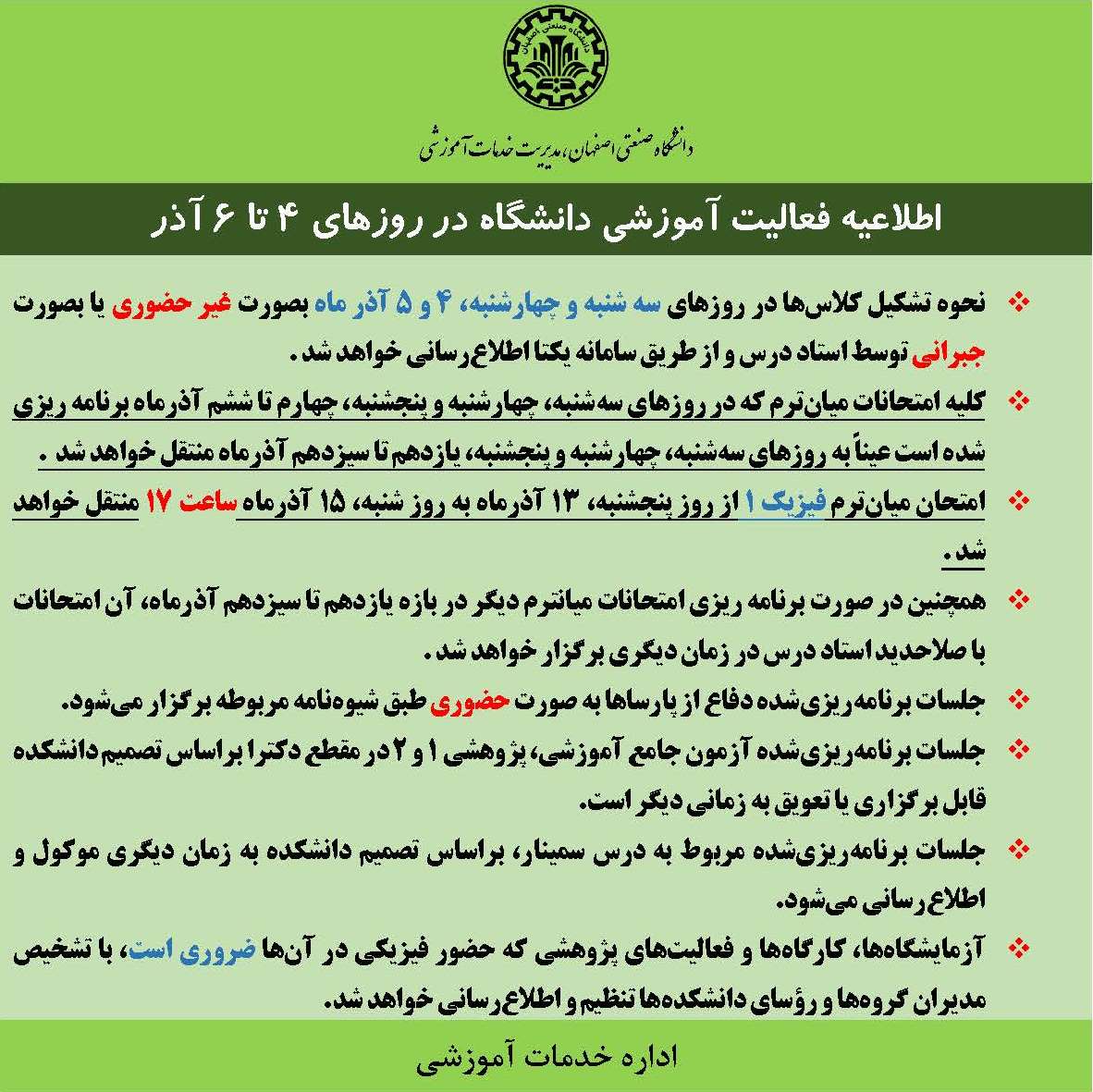 اطلاعرسانی پیرامون فعالیت آموزشی دانشگاه در روزهای 4 تا 6 آذر 1404