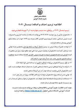 اطلاعيه ترميم (حذف و اضافه) نيمسال 4041