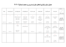 جدول زمان برگزاری امتحانات میانترم دروس پرجمعیت - نیمسال 4042 پیوست اندازه جدول زمان برگزاری امتحانات میانترم دروس پرجمعیت - نیمسال 4042 71.78 کیلوبایت